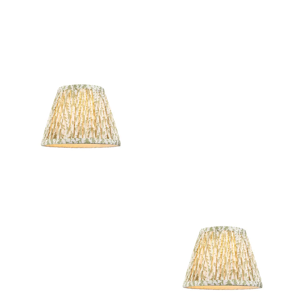 2 Pack 20cm Tapered Cylinder Lamp Shade – Herb Green Fabric – Pleated Leaf Handcrafted Light